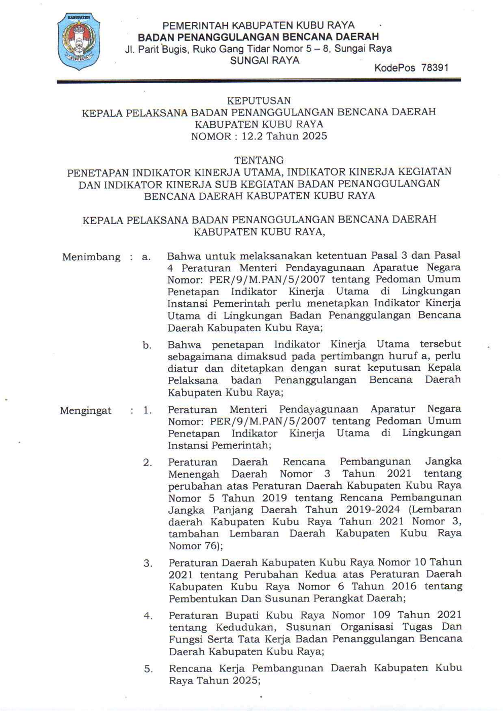Berikut ini adalah IKU Badan Penanggulangan Bencana Daerah Kabupaten Kubu Raya Tahun 2025 :